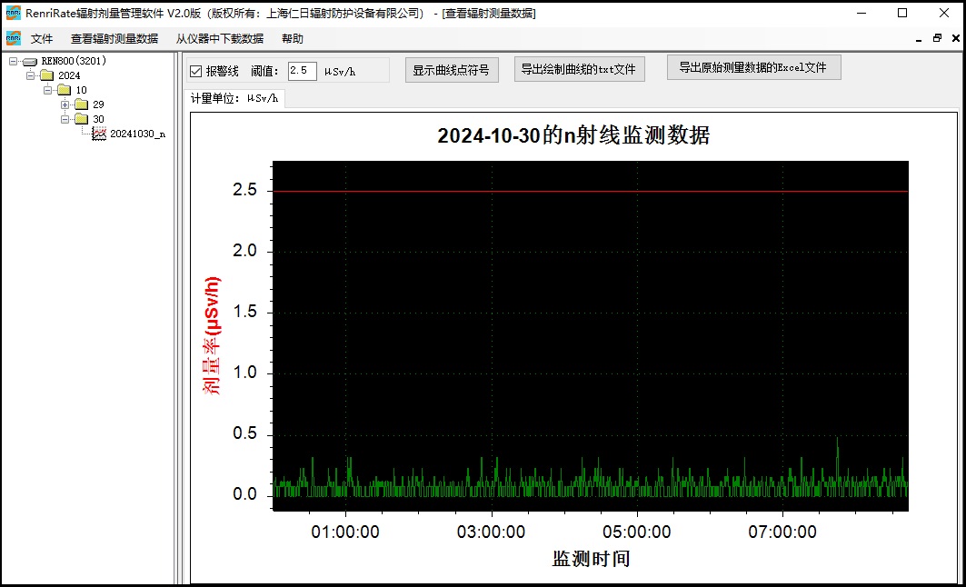 REN800型中子周围剂量当量(率)仪 采用高灵敏的进口He-3管作为探测器,反应速度快。该仪器使用方便;灵敏度高、抗γ性能好、能量响应特性好,即可用作便携式仪器又可用作固定式中子剂量监测仪。此外通过配套的RenRiRate辐射剂量管理软件可将存储的数据读出后分析。该仪器适用于环保、化工、石油、医疗、进出口商检、核电、加速器、中子源和其他安检、边境控制、海关检测等需进行中子辐射检测的场合。